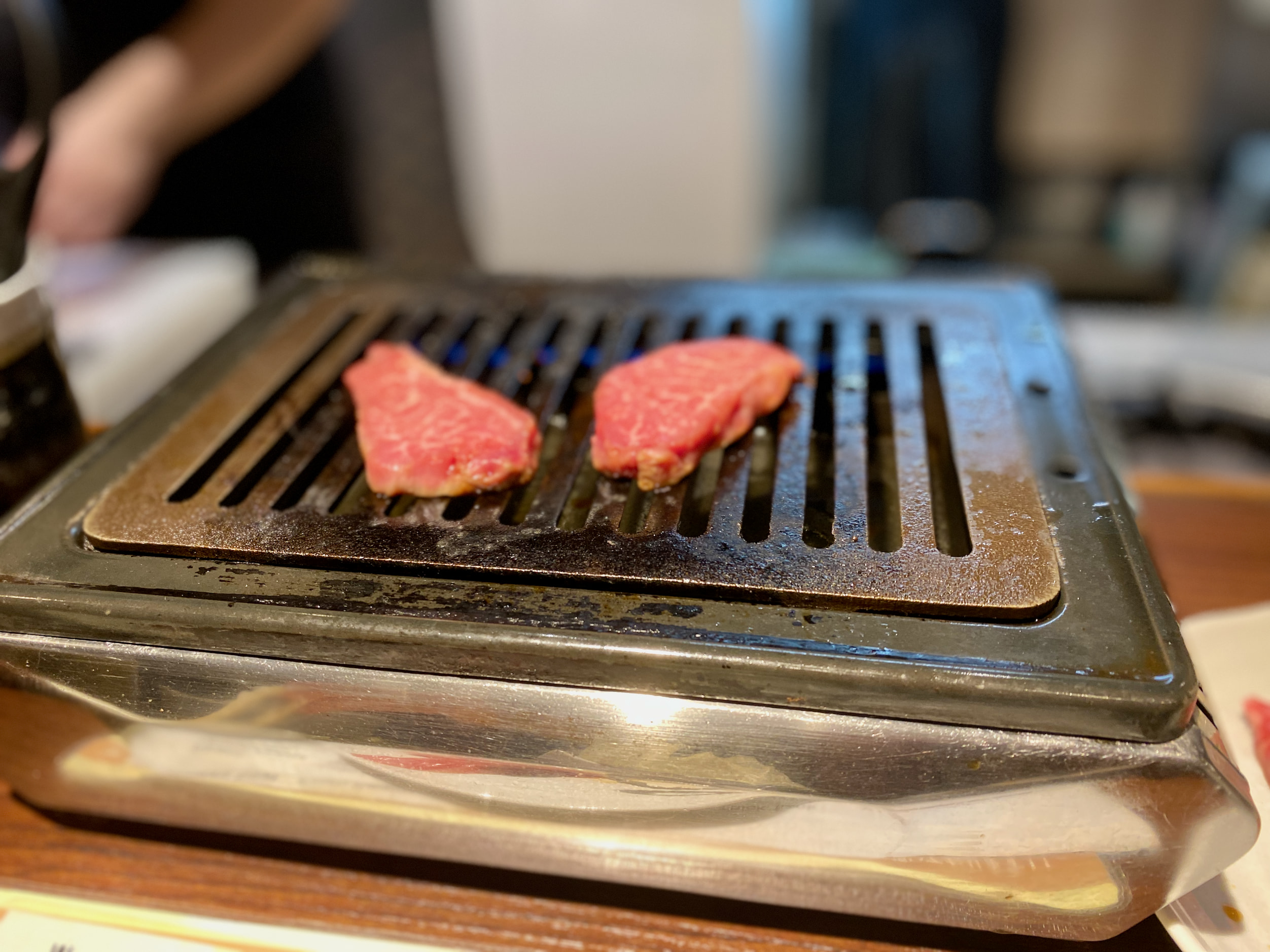 Kagoshima is known for its beef. We popped over to a well-rated grill, and I asked in broken Japanese if they had any tables. A woman came over and said, no, but tomorrow? I said, 7pm? Sure thing.