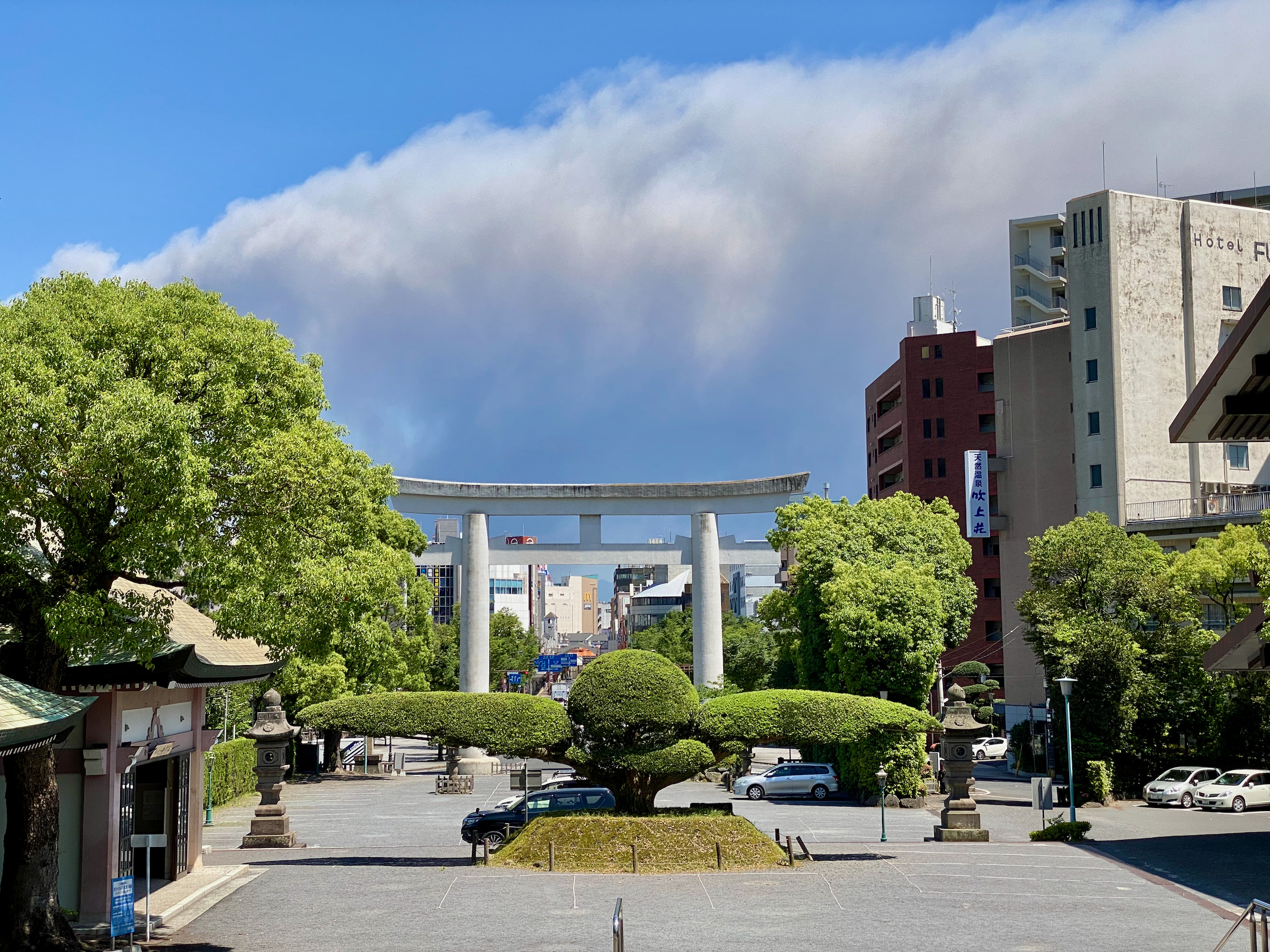 Coastal Kagoshima overlooks the most active volcano in Japan, called Sakurajima (I think literally Cherry Blossom Island).01 It erupts almost every day. This apparently doesn’t worry most folks, so we didn’t let it worry us. The photo at the top of this page is this mountain, erupting as usual on our first day in Kagoshima.